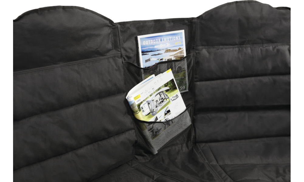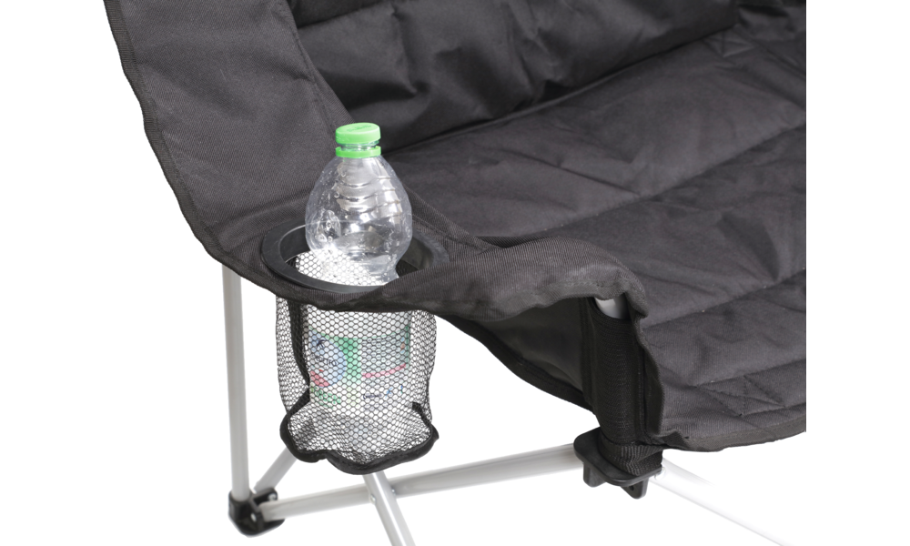 2-Personen-Sofa mit leicht abgewinkeltem Aluminium-Faltgestell. Ideal um den Vorraum von Zelten oder Vorzelten entspannt zu geniessen. Mit zentral angebrachtem Organizerbereich mit zwei Gazetaschen. Bequem gepolsterter Sitz- und Rückenbereich. Sekundenschneller Auf- und Abbau ohne spezielle Montage. Inklusive Packsack für Aufbewahrung und Transport.