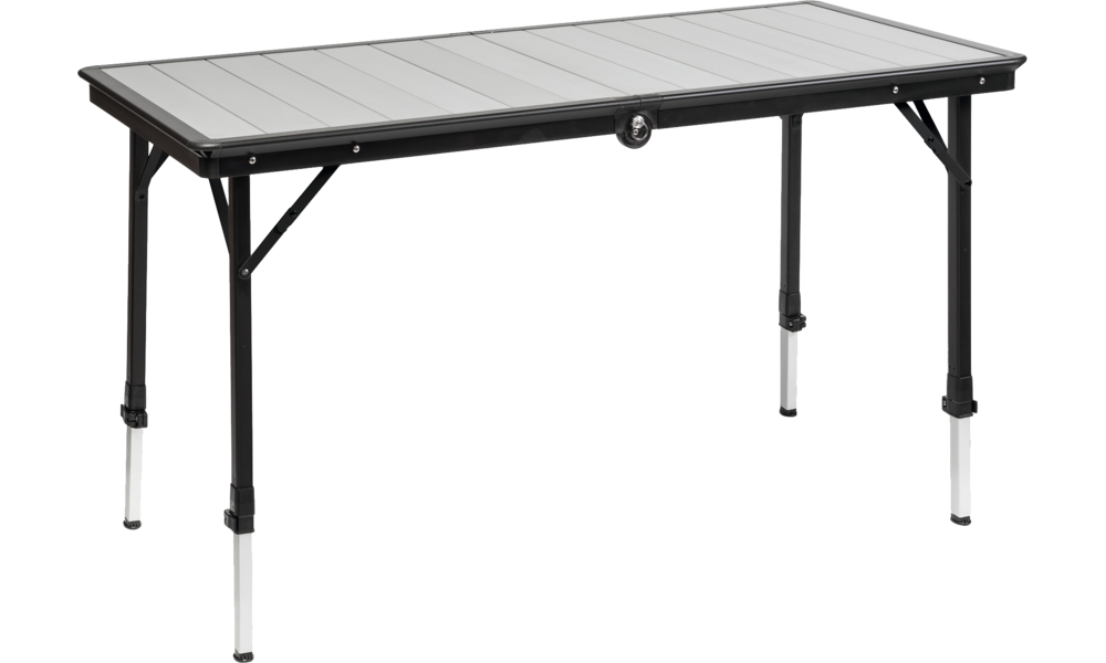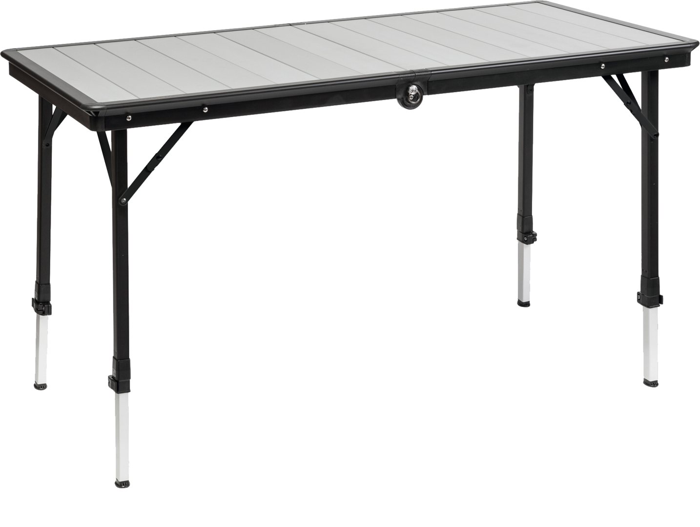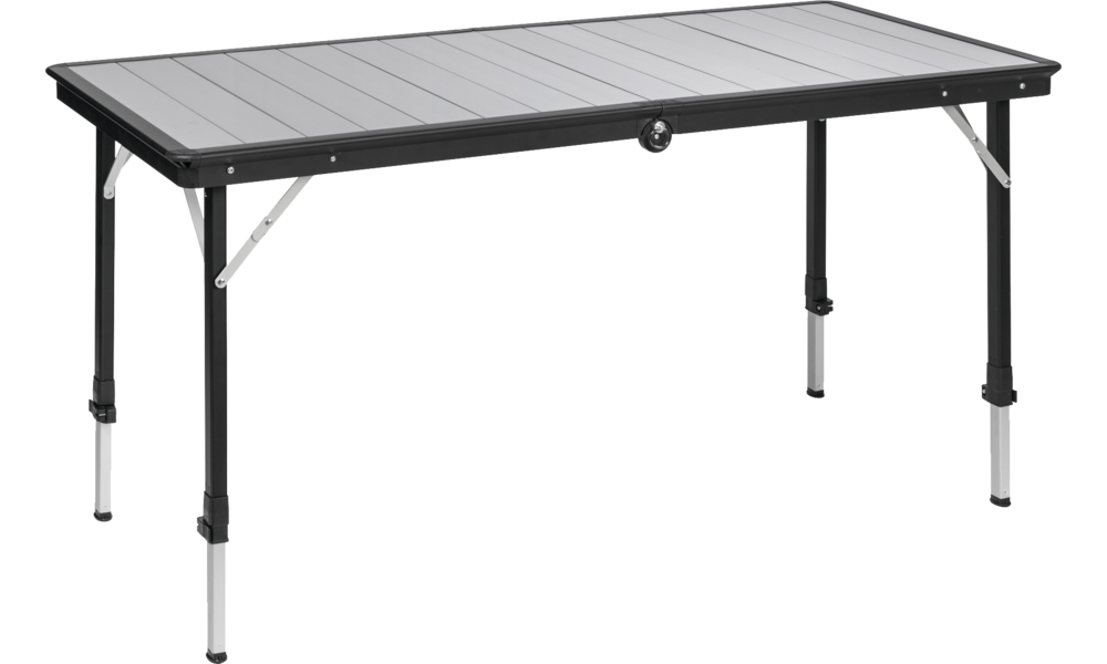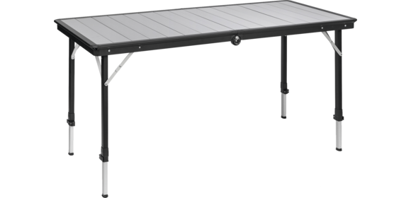 Hochwertiger Outdoor- und Campingtisch mit spezieller Klappplatte aus besonders wetterfesten und verschleißfesten Aluminiumlamellen.