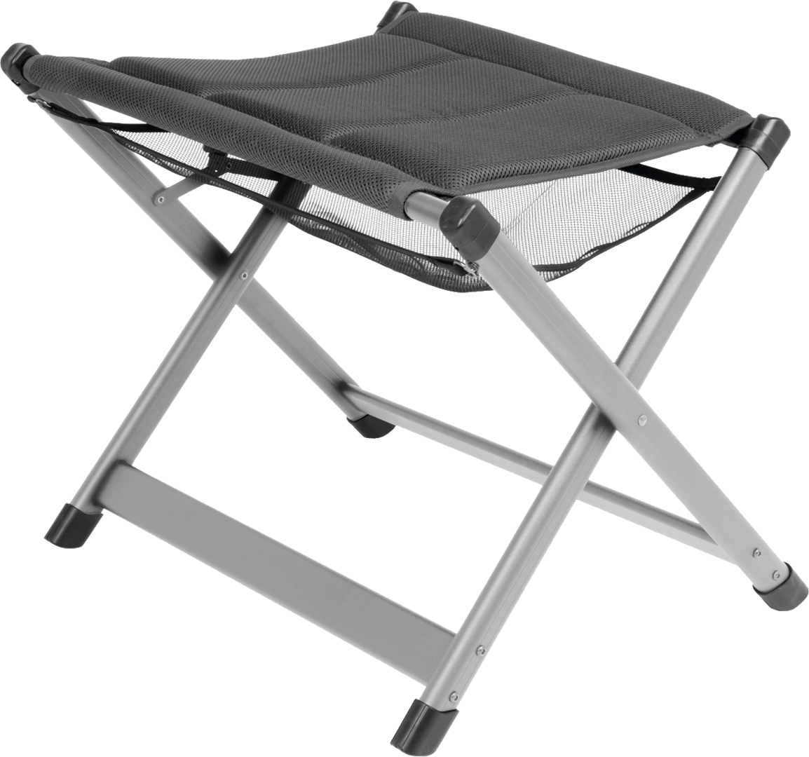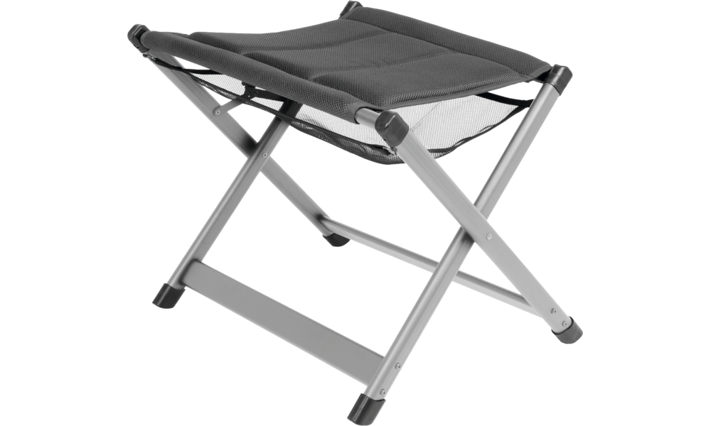 Beinauflage mit stabilem, faltbarem Aluminiumrahmen. Leicht verstau- und transportierbar, mit praktischer Netzablage. Belastbarkeit 100 kg.