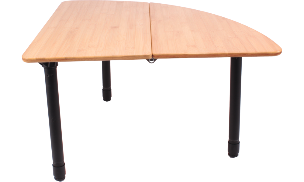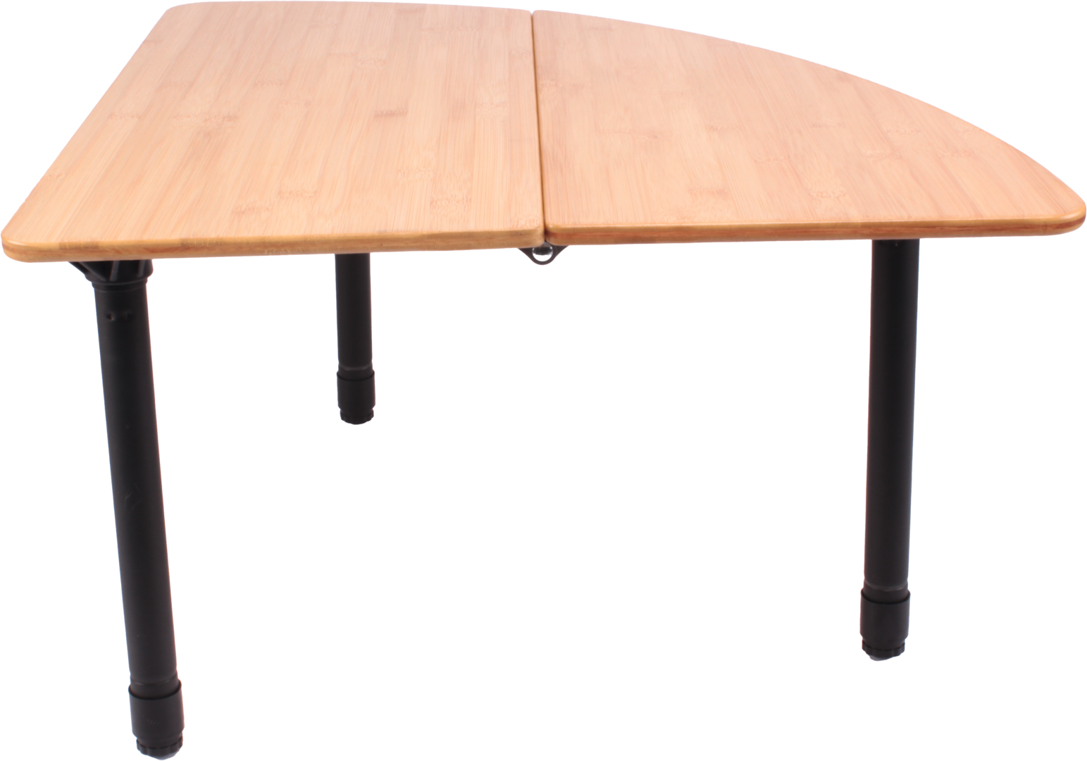 Das matt-schwarze Gestell kann dank seiner ausziehbaren Beine auf zwei Höhen eingestellt werden. Der leichte Tisch ist einfach zu montieren und zu demontieren. Mit praktischer Aufbewahrungstasche.