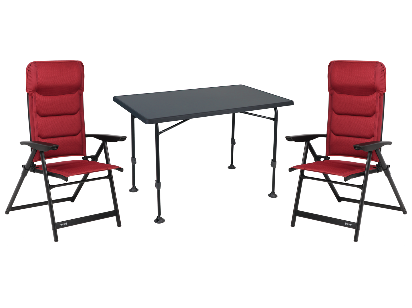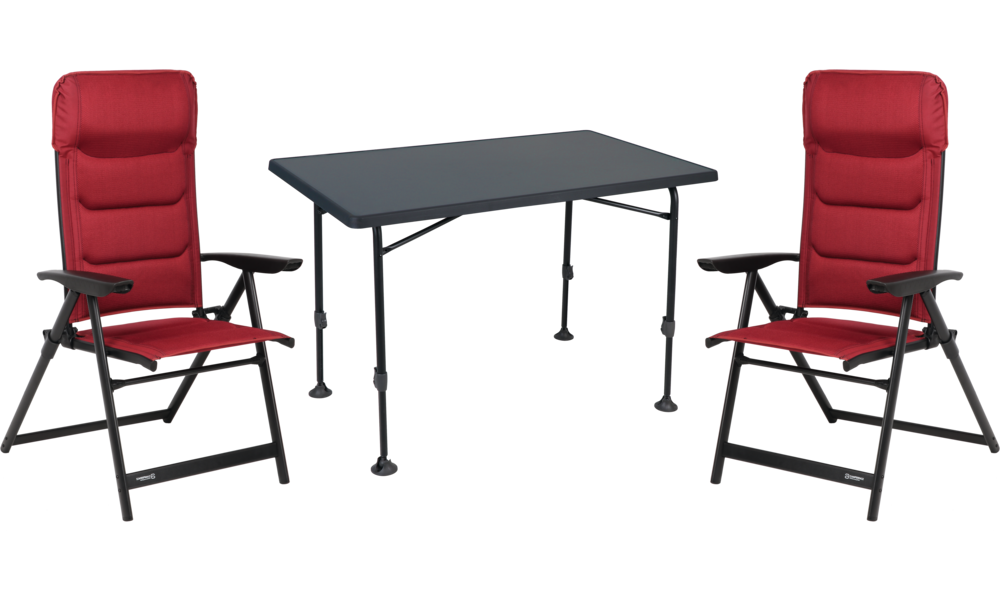 Set bestehend aus 2 x Sessel CAMPERDICE Evolution in bordeaux (Nr. 22252) und 1 x Tisch CAMPERDICE Evolution 100 (Nr. 21198)