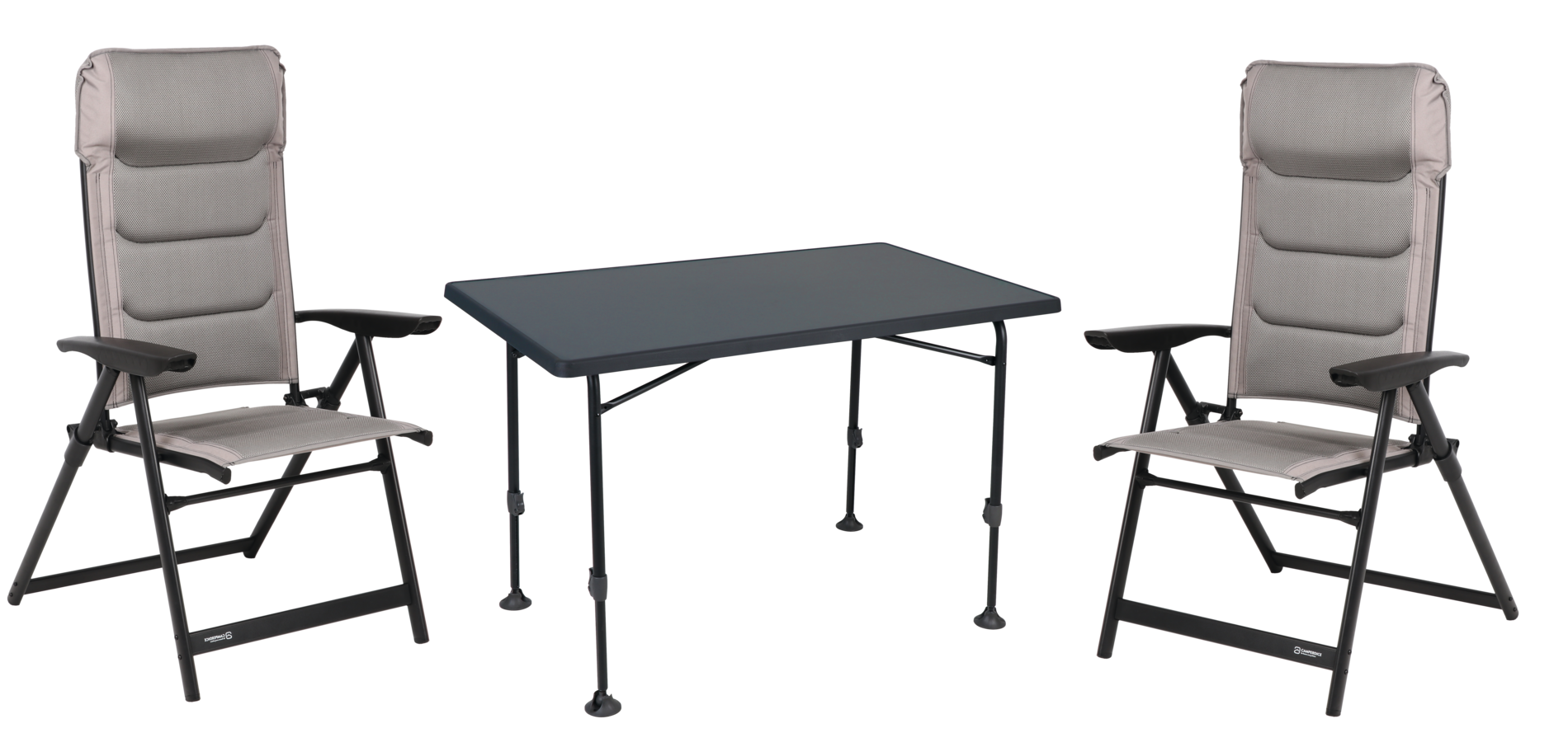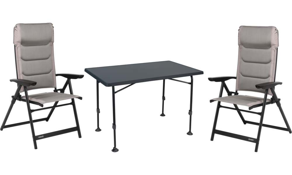 Set bestehend aus 2 x Sessel CAMPERDICE Evolution in grau (Nr. 22103) und 1 x Tisch CAMPERDICE Evolution 100 (Nr. 21198)