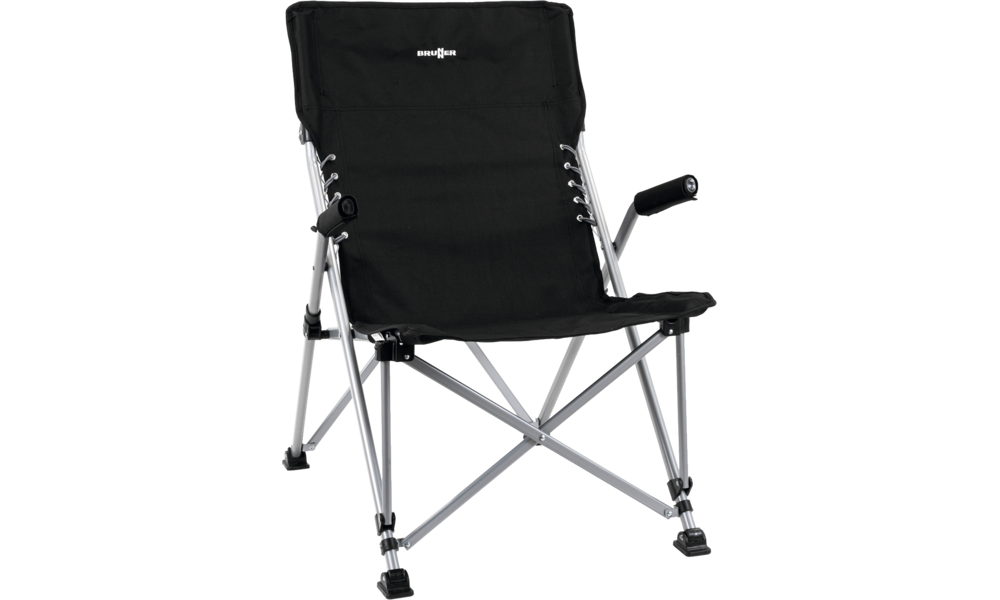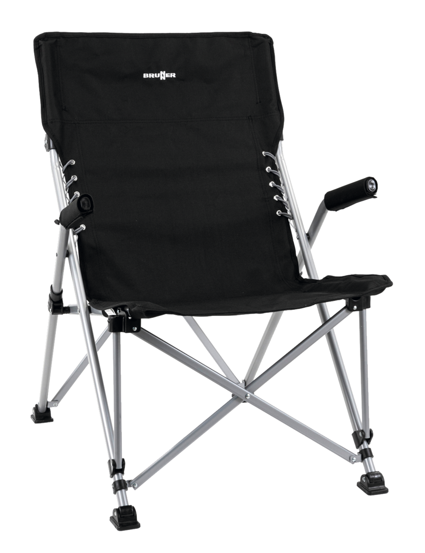 Faltsessel RAPTOR SUSPENSION. Komfortabler Faltstuhl mit elastisch geschnürter Rückenlehne aus robustem Polyestergewebe (100 % Polyester) und pulverlackiertem Stahlgestell. Vier Standbeine mit schwenkbaren Bodenplatten sorgen für hohe Standfestigkeit auch auf weicherem Untergrund.