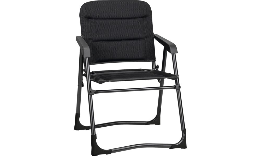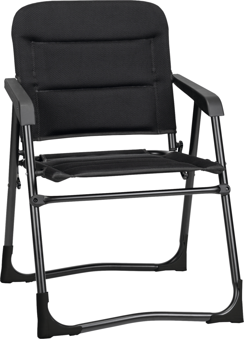 Faltstuhl ARAVEL VANCHAIR. Superkompakter Faltstuhl mit stabilem, klappbarem Aluminiumrahmen, speziell für Kleinbusse und Transporter entwickelt. Metallisches Zentralgelenk. Polsterung aus komfortablem 3Durafeel-Gewebe (100 % Polyester) für hohen Sitzkomfort. Belastbarkeit 120 kg.
