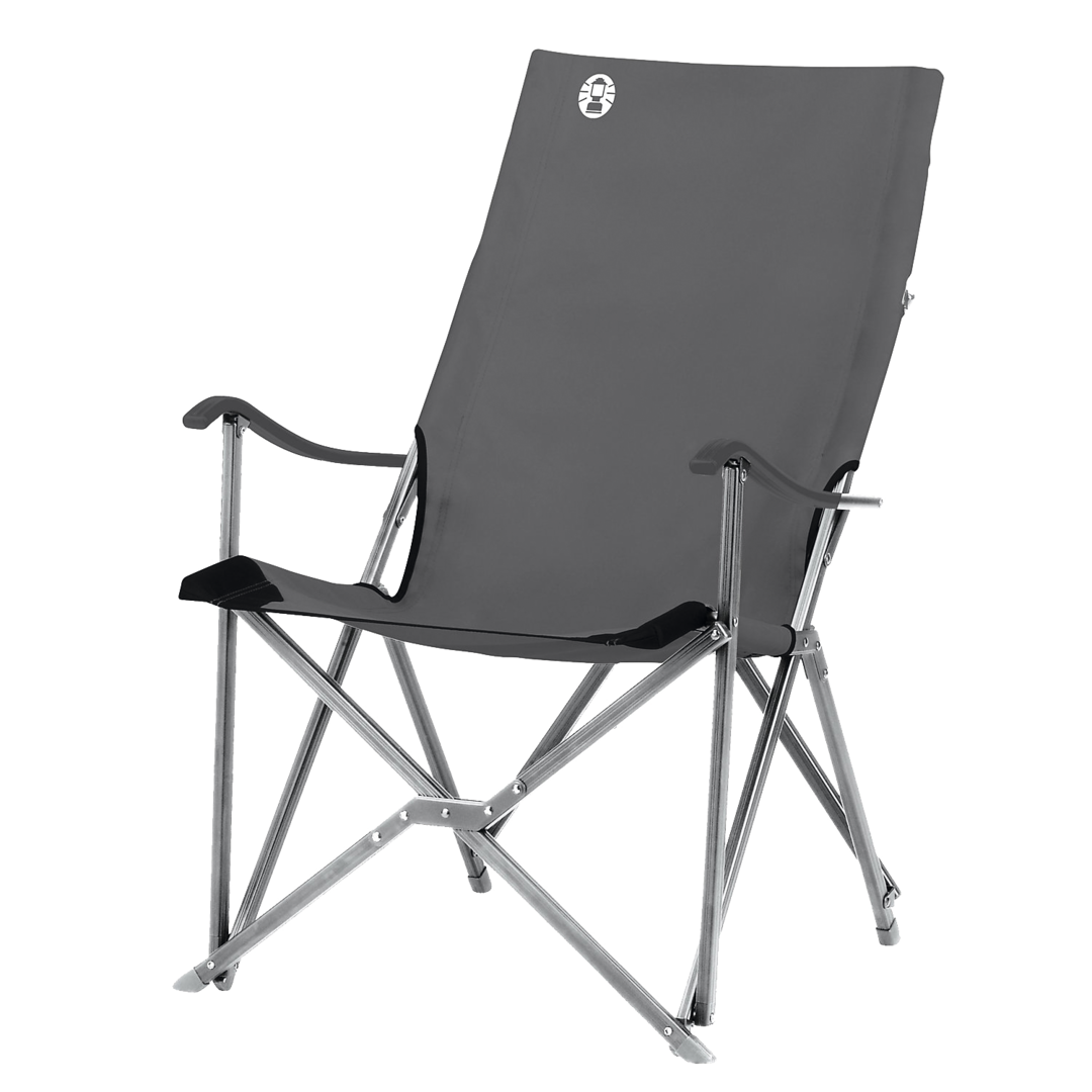 Faltstuhl SLING CHAIR Aluminium. Geschwungene Armlehnen und eine höhere Rückenlehne garantieren hohen Sitzkomfort. Der Rücken wird angenehm entlastet. Für den einfachen Transport haben die Sling Chairs eine Transporttasche.