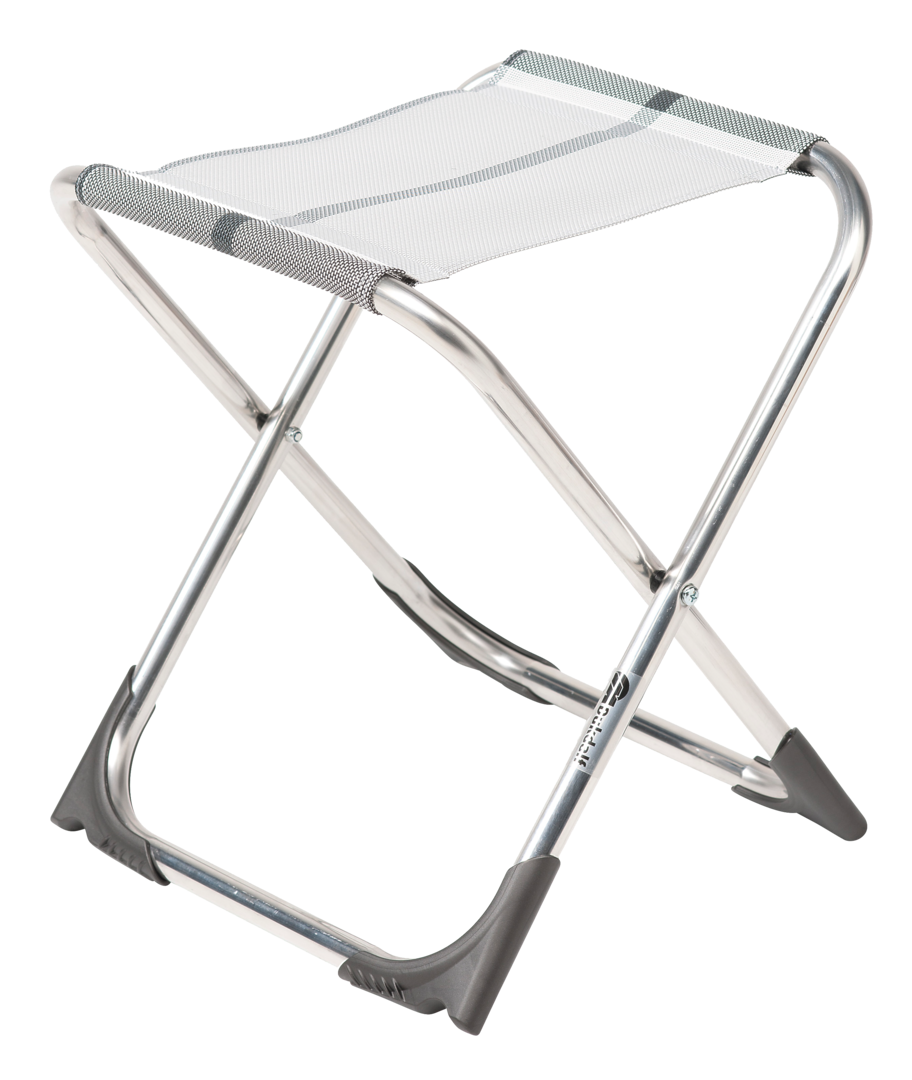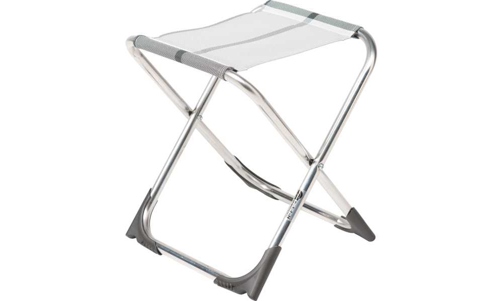 Vielseitig verwendbarer Alu-Klapphocker. Mit der Tischplatte auch als Beistelltisch nutzbar.