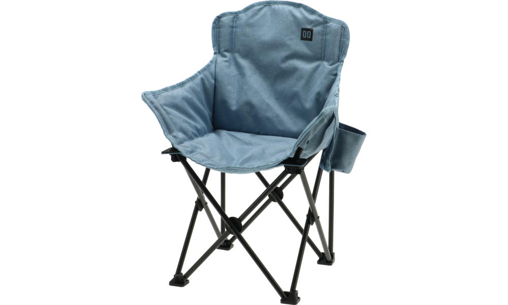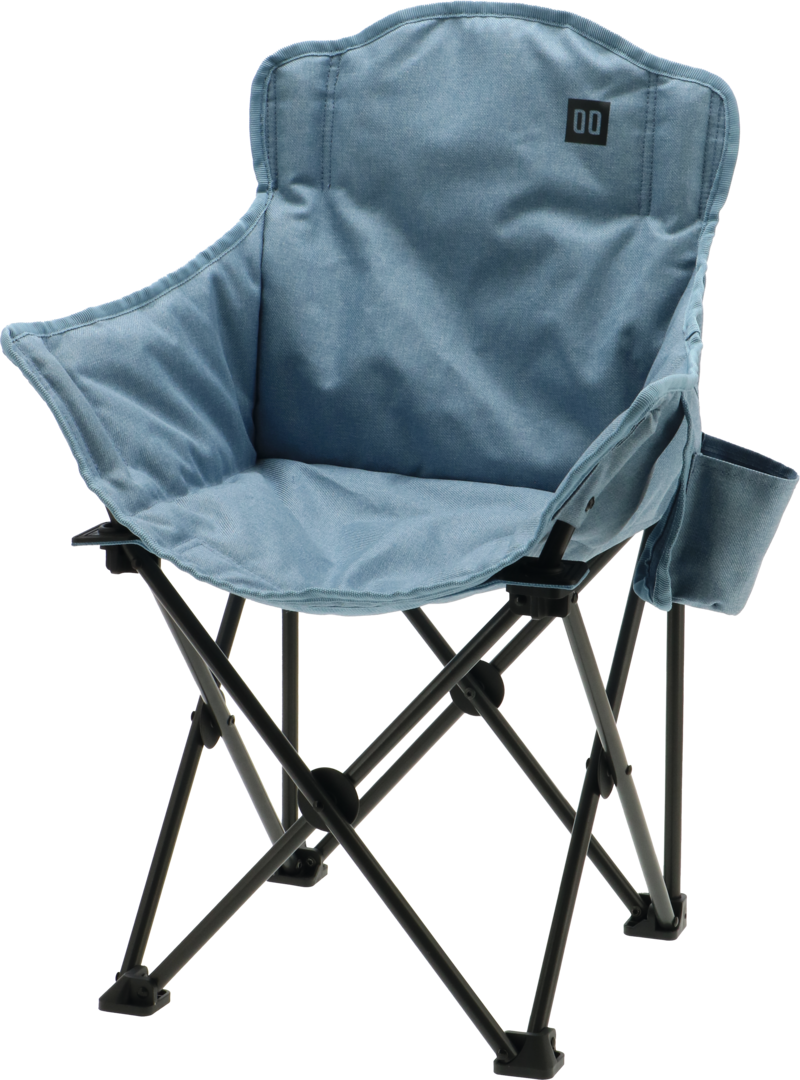 Kompakt faltbarer Kinderstuhl mit stabilem Aluminiumrahmen und schnelltrocknender Polyester-Polsterung.