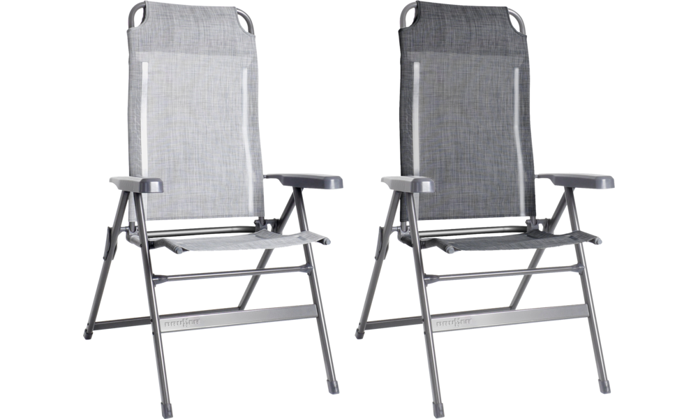 Moderner, klappbarer Vierbein-Stuhl mit Aluminium-Gestell aus hoch belastbarem Ovalprofil.