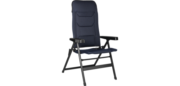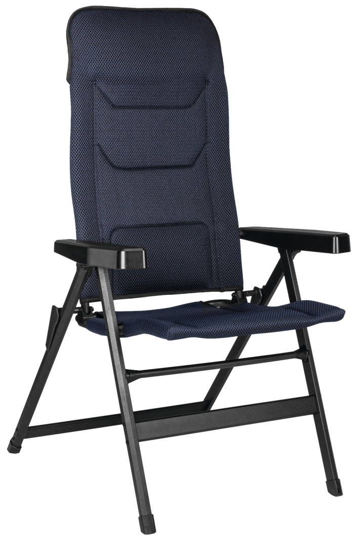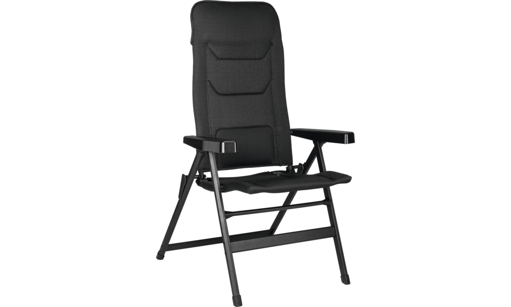 Klappsessel mit pulverlackiertem Aluminium-Gestell, atmungsaktivem FULL-3D Bezug (100 % Polyester) und metallverstärkten Armlehnen zur Rückenlehnenverstellung.