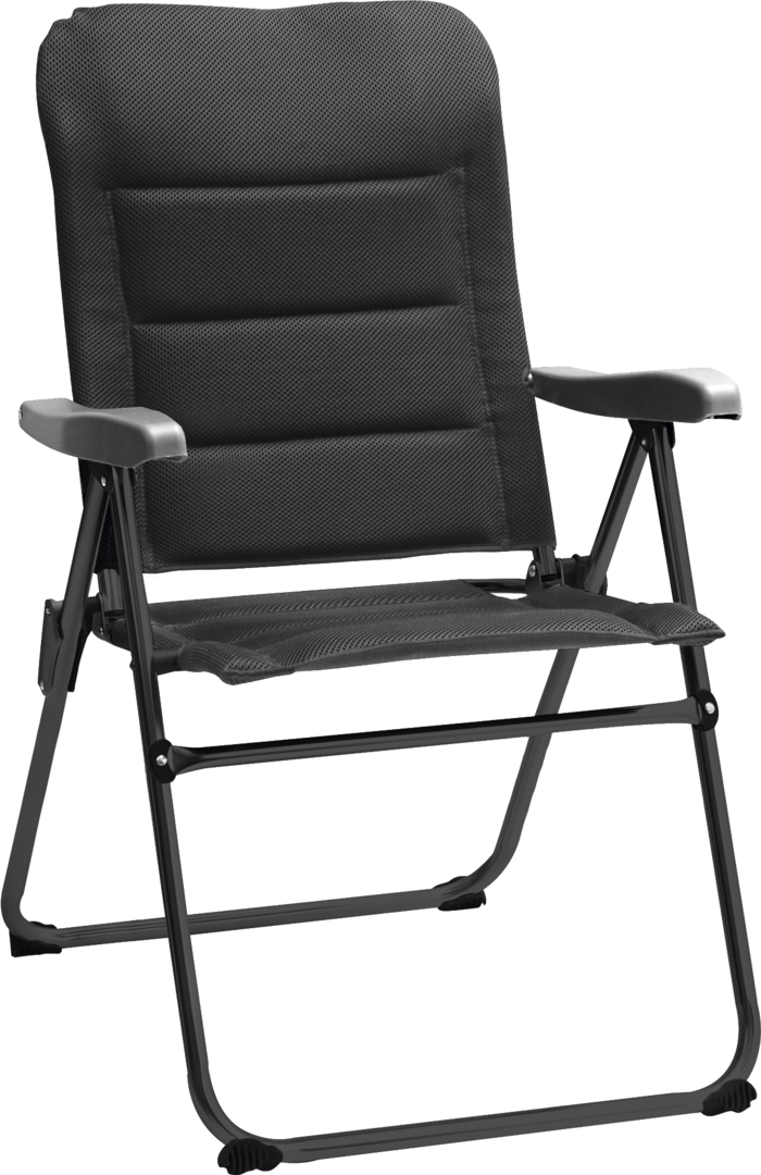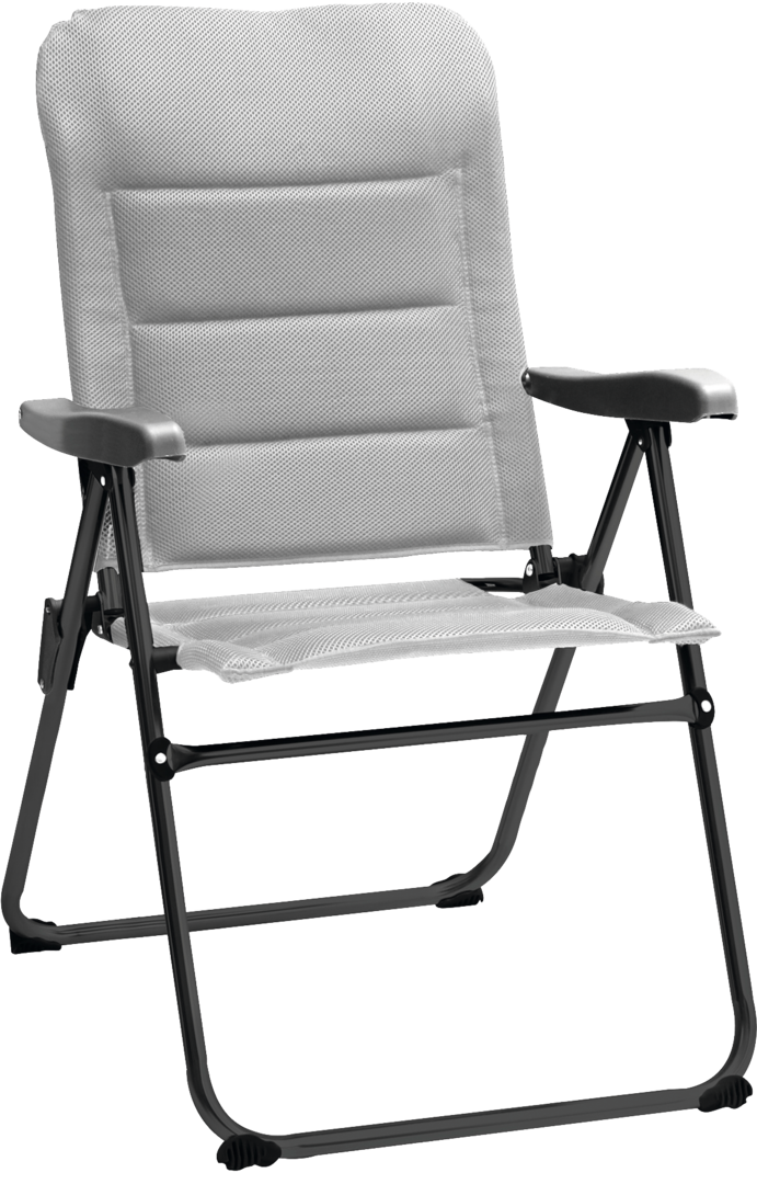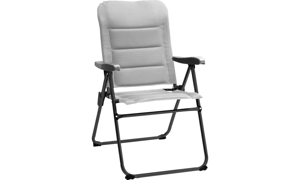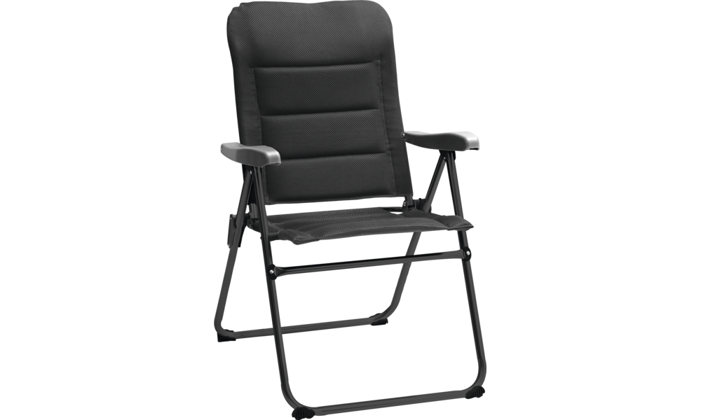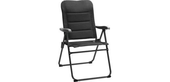 Platzsparender Klappsessel mit fester Rückenlehne und Bügelfuß.