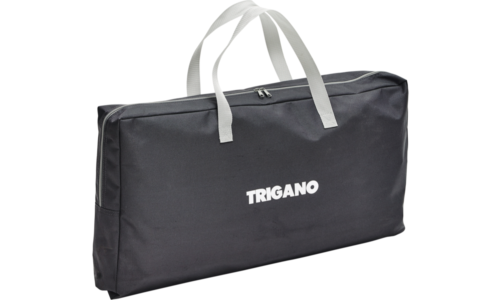 Zwei gemusterte Ablageböden, drei Seitentaschen, Windschutz. Inklusive Tragetasche.