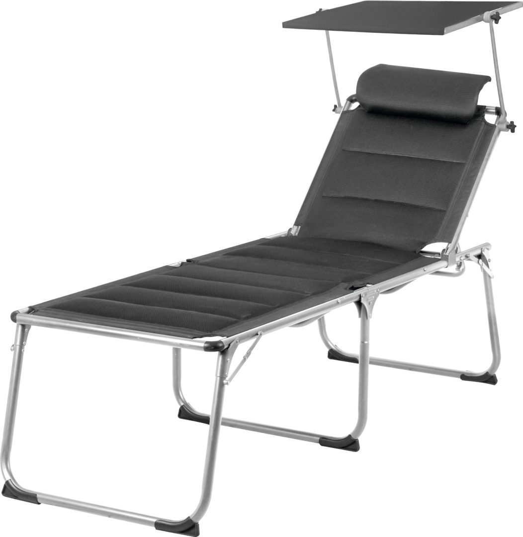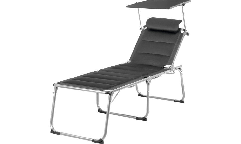 Sonnenliege mit Sonnenblende, hoher Liegefläche und höhenverstellbarer Kopfstütze. Faltbarer Aluminiumrahmen, Bezug aus 3Durafeel (100 % Polyester). Belastbarkeit 120 kg.