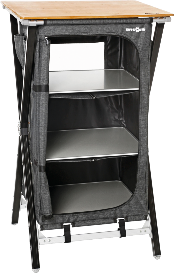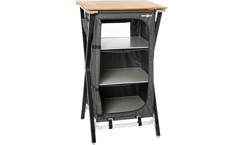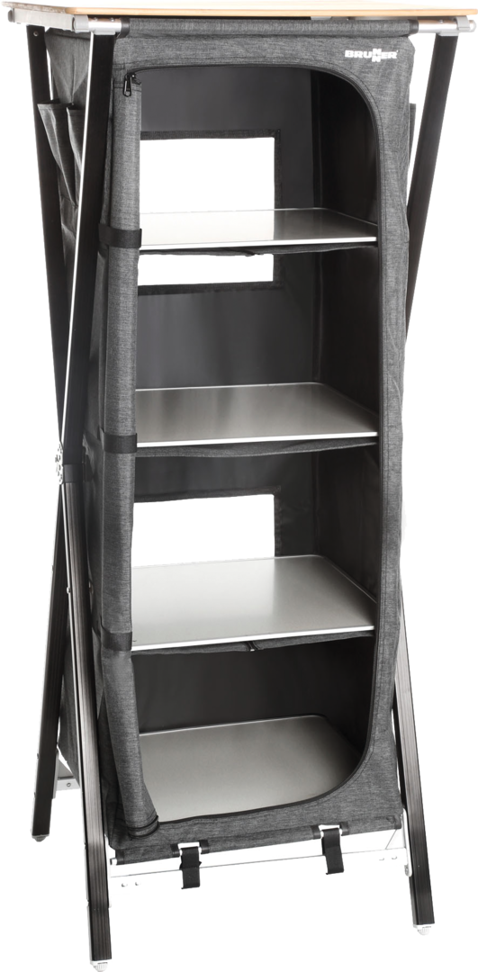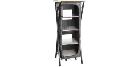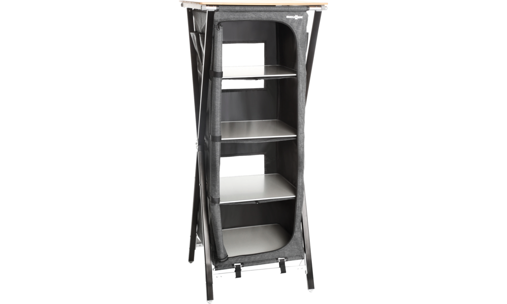 Stabiler Vielzweckschrank mit CROSS Rahmen aus Alu-Rechteckprofil und zentralem Metallgelenk.