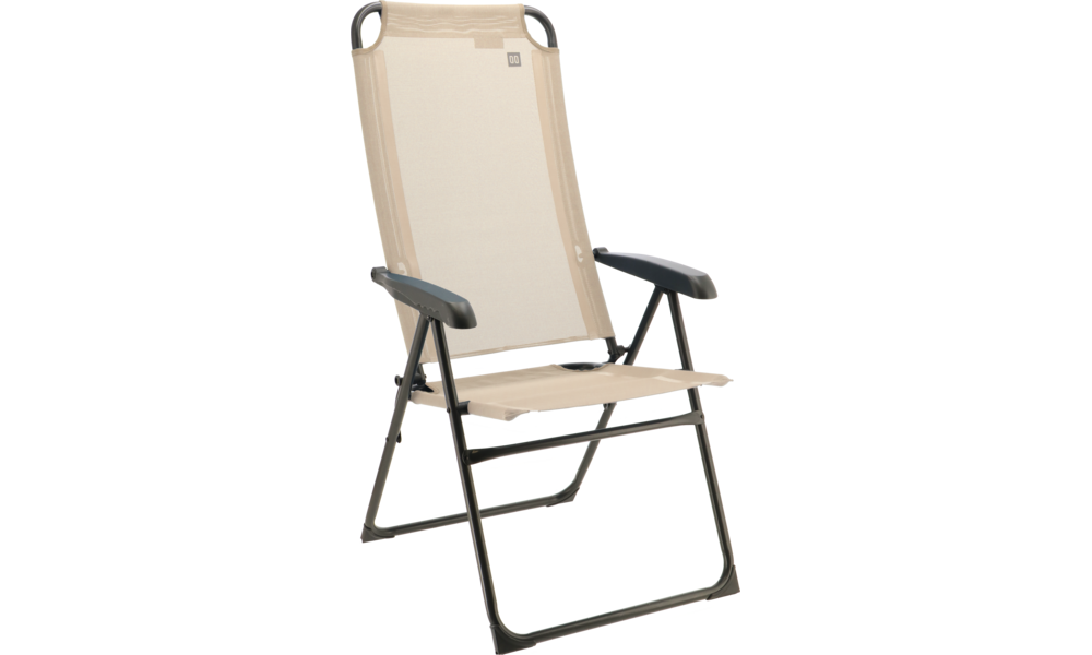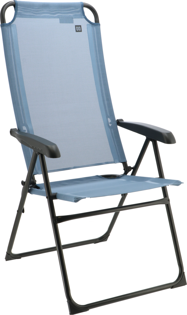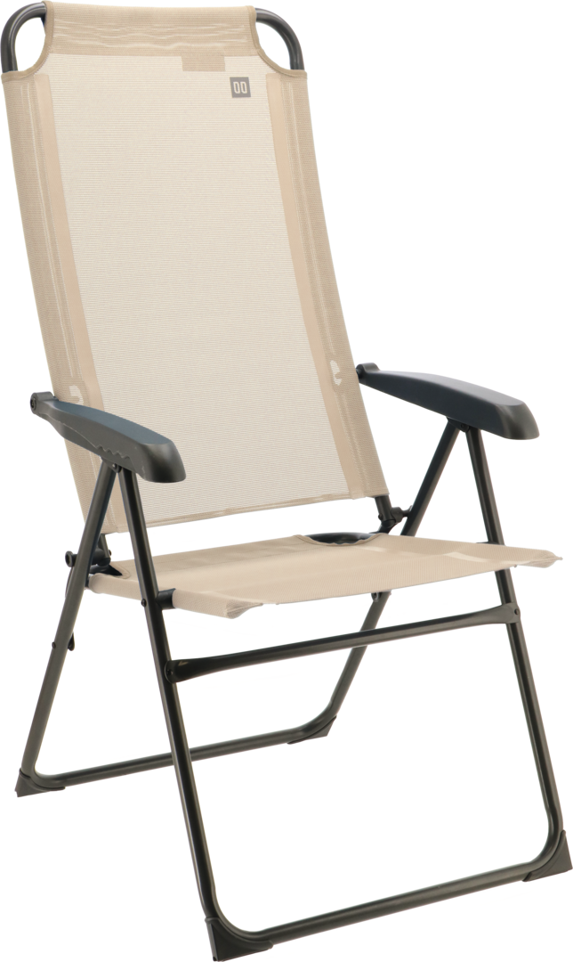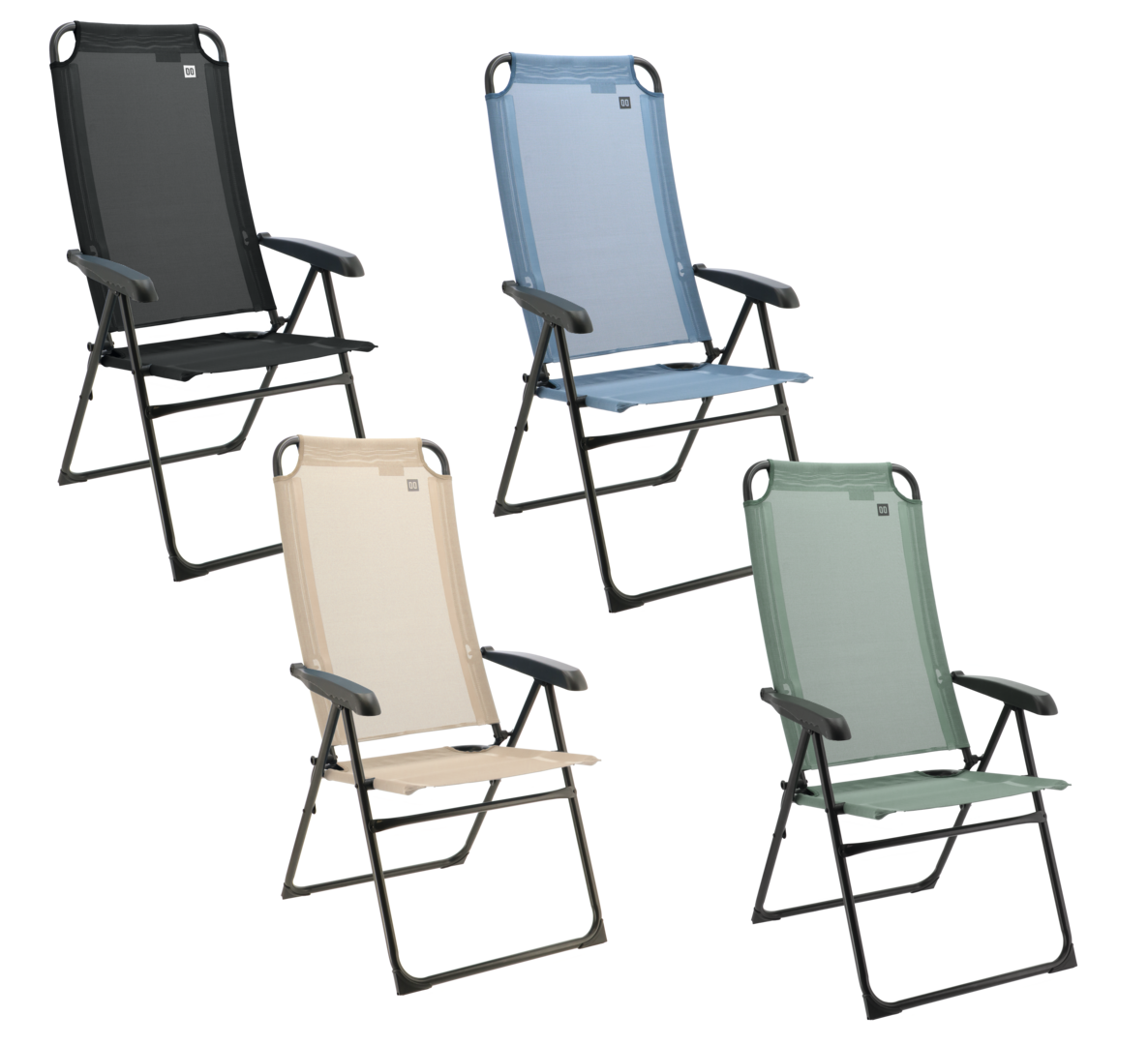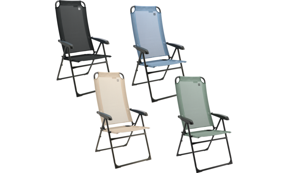 Kompakter klappbarer Lehnstuhl, Rückenlehne in 6 Positionen verstellbar.
