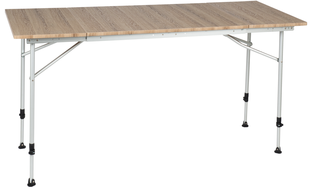 Tisch mit beidseitig ausziehbarem Gestell. Inklusive Tragetasche. Belastbarkeit 30 kg.