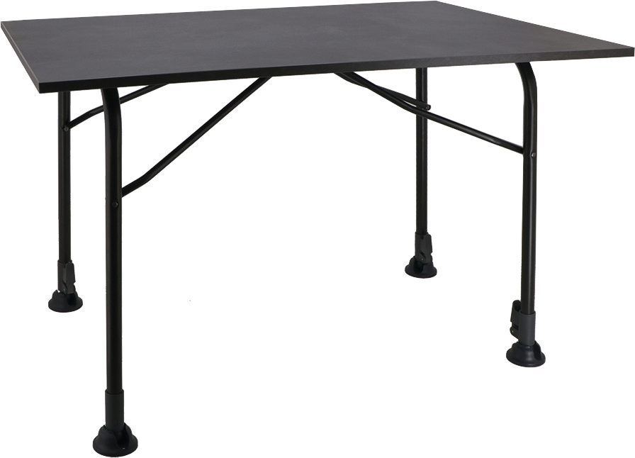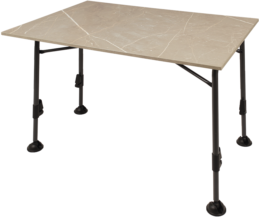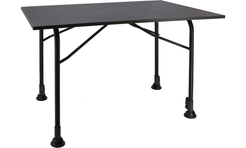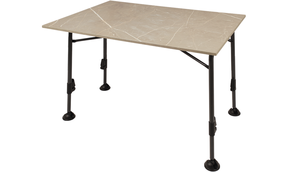 Kompakter und wetterfester Campingtisch mit stabiler Tischplatte aus Exteriolit und leichtem Stahlgestell.
