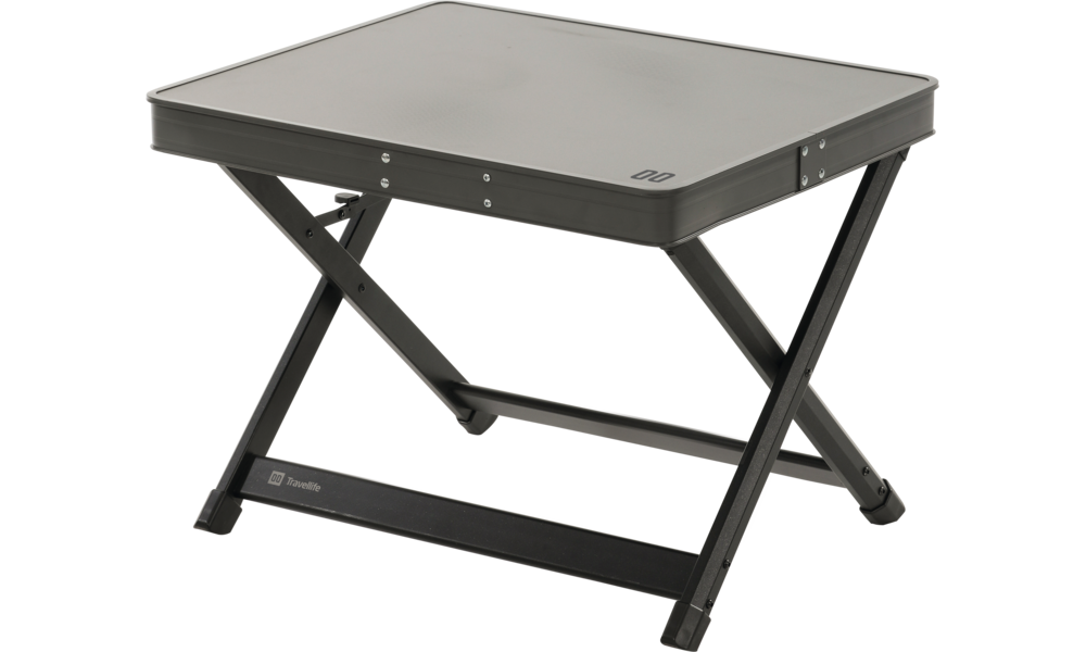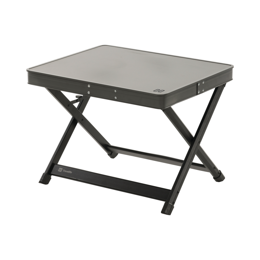Tischplatte COSA. Mit der Tischplatte COSA wird eine Travellife-Beinauflage zum Beistelltisch. Sichere Befestigung mit Klickschnalle. Belastbarkeit 30 kg. Farbe Dark Grey