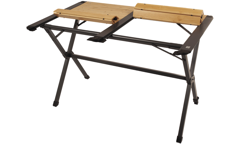 Der Premium Tisch MESA ist in den Versionen für 4 oder 6 Personen erhältlich. Die Tischplatte ist aus Bambus und kann in drei Teilen gerollt werden. Die Aluminiumbasis ist leicht und hat ein verstellbares Bein. Der Tisch wird in einer praktischen Tragetasche geliefert.
