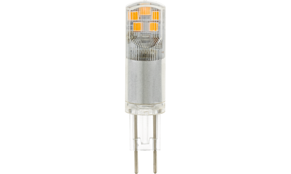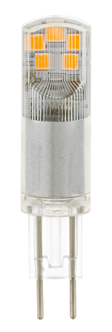 Sockel GY6,35, Verbrauch 2,4 W, Lichtstrom 300 lm, Lichtfarbe 2.700 K, nicht dimmbar, EEK F.