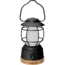 Elegante LED-Laterne mit haltbarem, lackiertem Metallrahmen, Bambussockel und lichtdurchlässigem Kunststoffschirm.