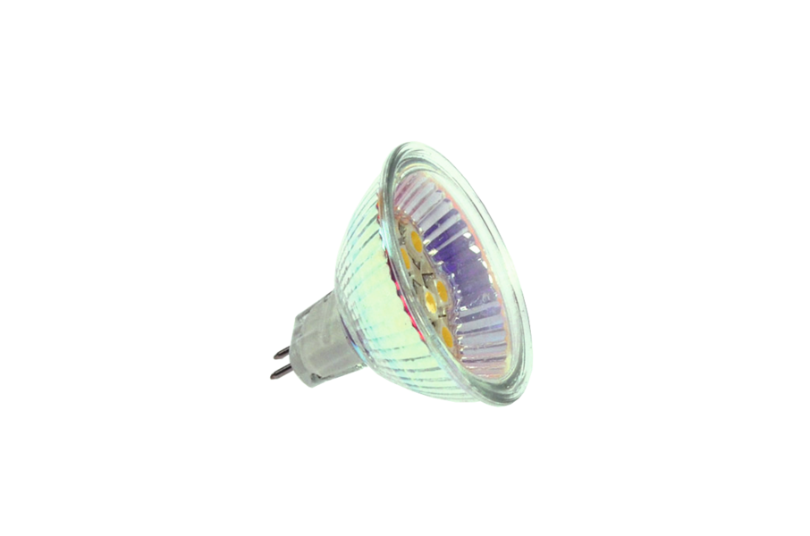 Sockel GU5.3, 12 V, Verbrauch 1,6 W (entspricht ca. 20 W). Leuchtwinkel 125°, Lichtfarbe 3000 K, Lichtstrom 330 lm.
