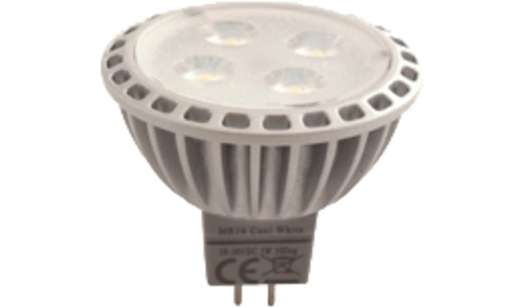Sockel GU5.3, 12 V, Verbrauch 5 W (entspricht ca. 50 W), Leuchtwinkel 30°, Lichtfarbe 4500 K, Lichtstrom 330 lm.