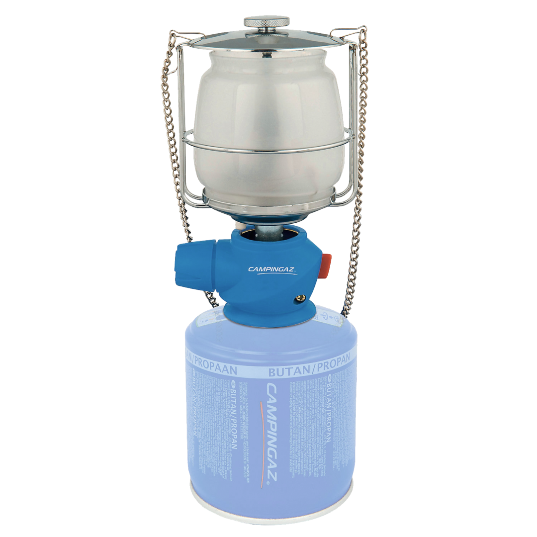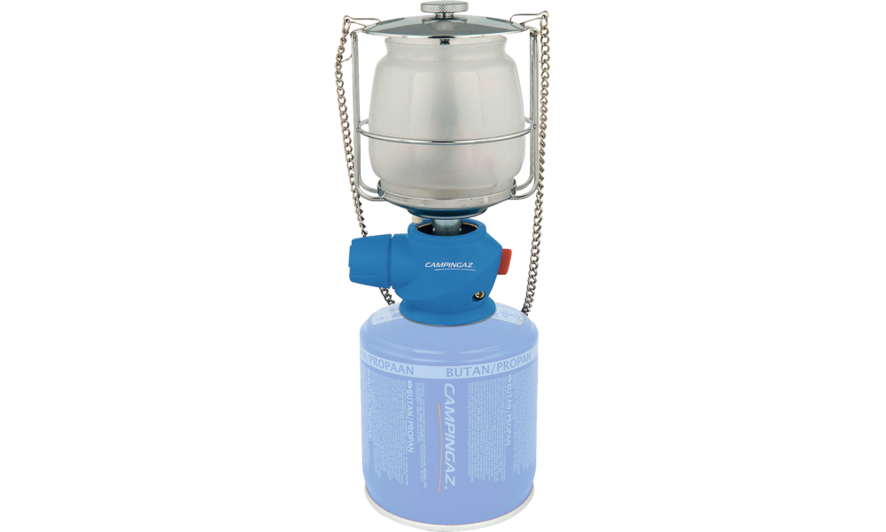 Leuchte Lumostar® PLUS PZ. Mit Piezozündung und Easy Clic™-Anschluss für Ventilkartuschen. Mit Trage- und Hängekette. Leistung 80 W. Verbrauch 38 g/h. Brenndauer 6,5 - 12 h.