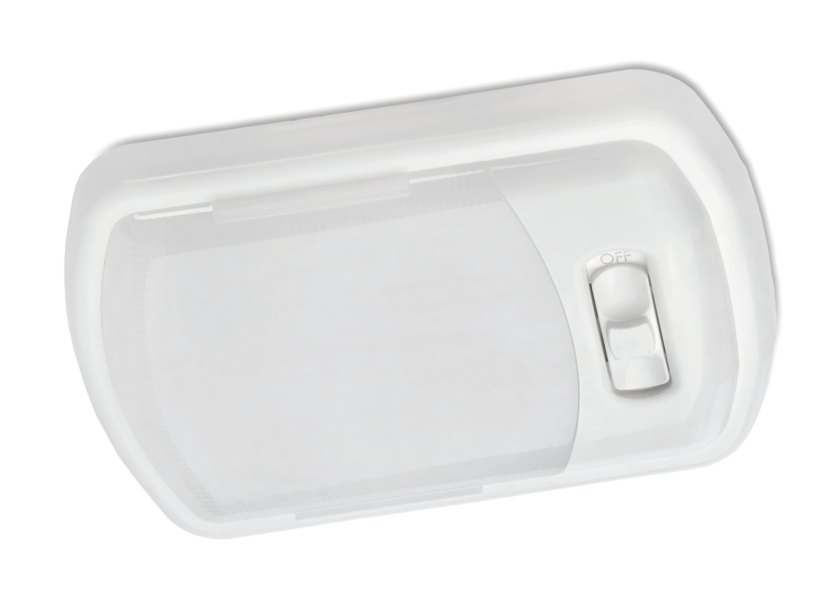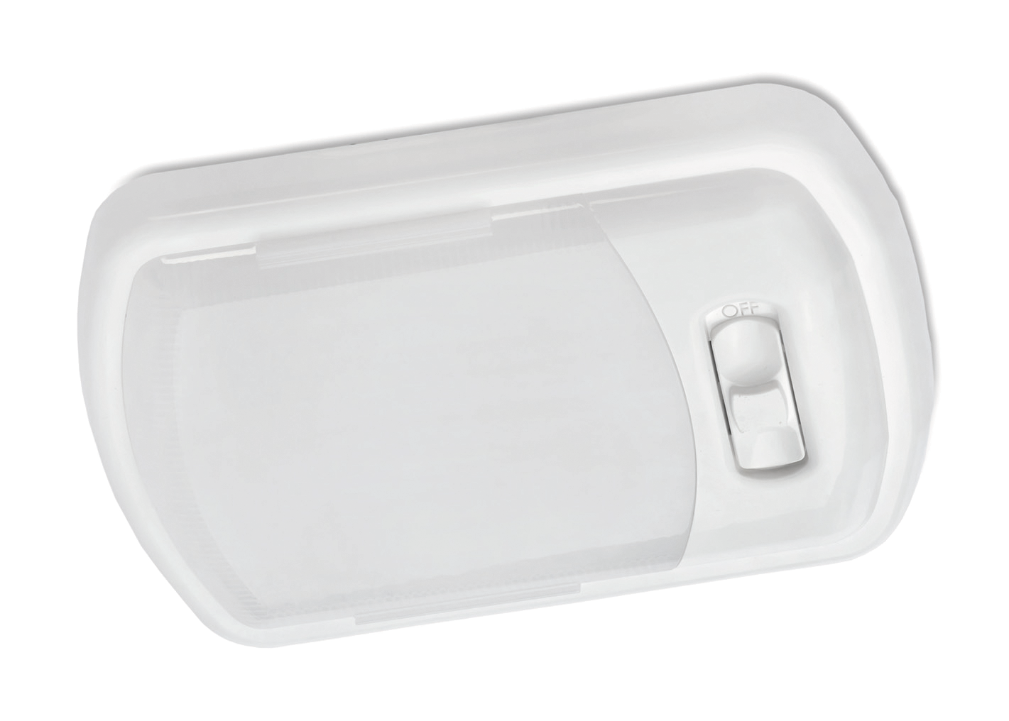 Aufbau-Deckenleuchte aus Kunststoff mit 12 LEDs (warmweiß) und Schiebeschalter.