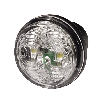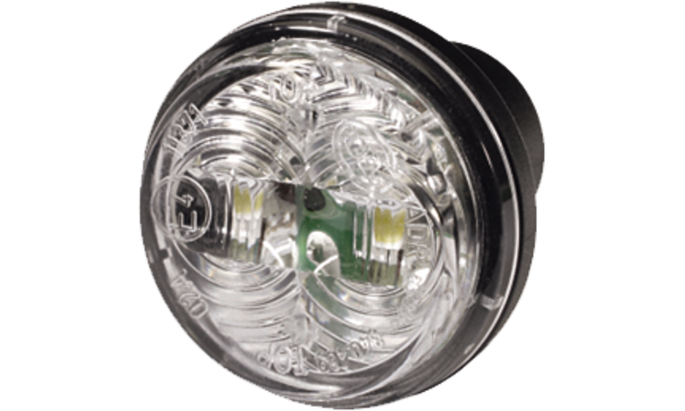 Für Einbau, schwarzes Kunststoffgehäuse mit Klebefolie zum Ankleben an die Karosserie, Lichtscheibe glasklar, mit 2 weißen LEDs, 12 V/0,6 W, ø 35 mm,