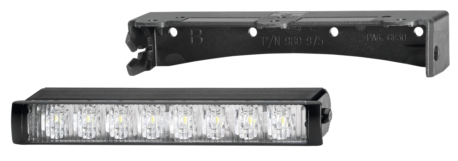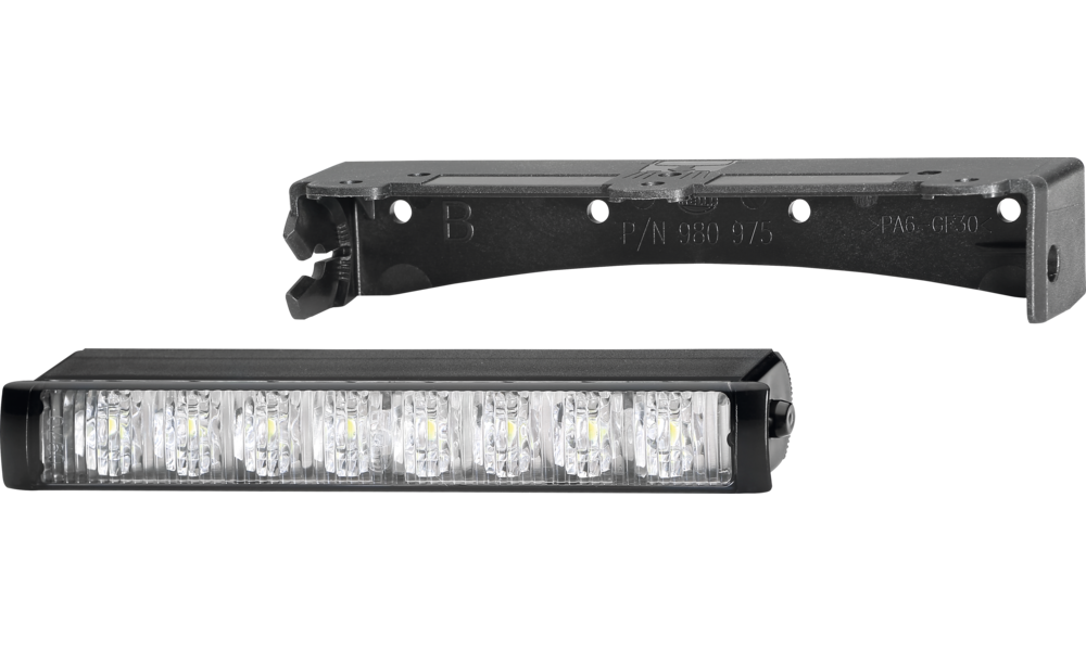 Tagfahrleuchten-Set LEDayLine für horizontalen Einbau, 8 Hochleistungs-LEDs pro Tagfahrleuchte, geeignet für Fahrzeuge ohne Pfeilung, Leistungsaufnahme 2 W, IP 6K7/IP 6K9K, hohe Vibrationsbeständigkeit, Verpolschutz.