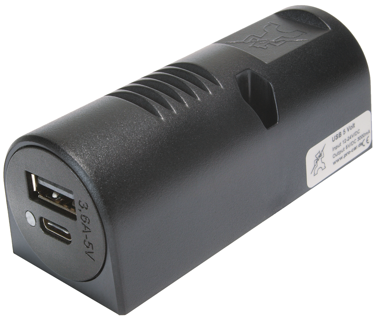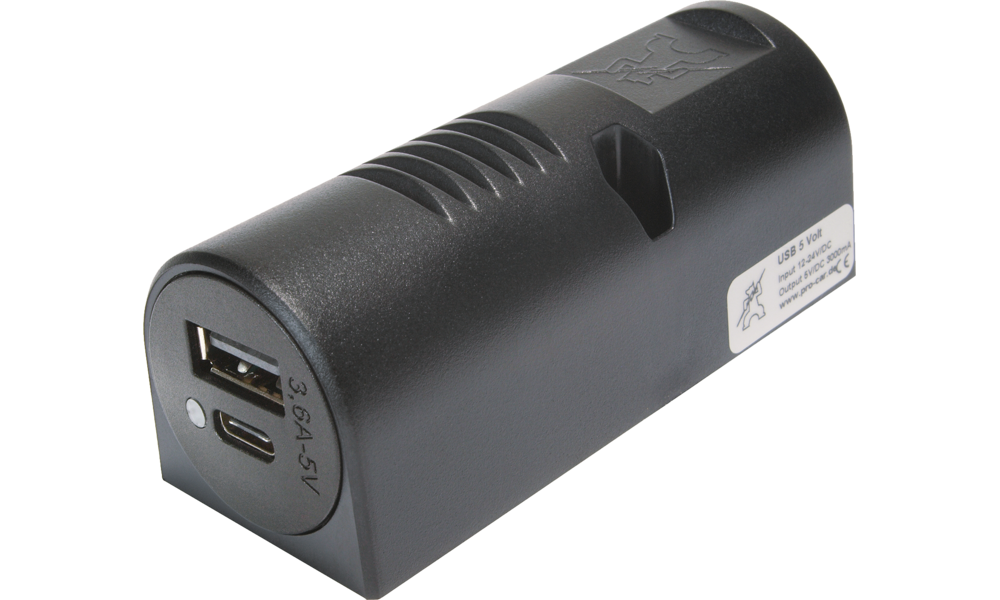 12-24 V DC/5 V DC 3,6 A mit integriertem Spannungswandler.