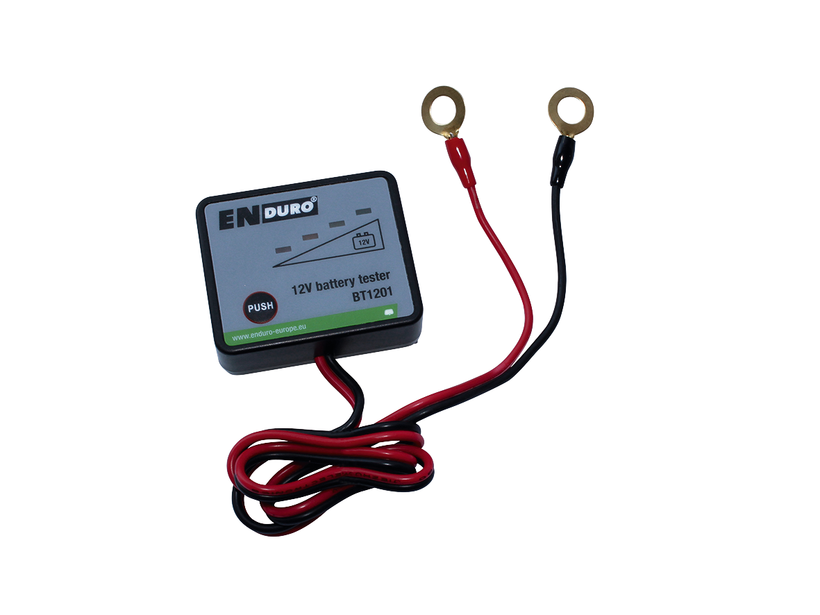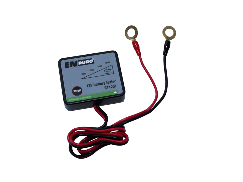 Batteriesorten: Blei-Säure, AGM, Gel. Die Aktivierung erfolgt durch das Drücken der Test-Taste, hierdurch verbraucht der Batterietester keinen Strom während dem Stand-By Betrieb. Ein Anschluss kann vor einem eventuell vorhandenen Batterietrennschalter erfolgen, um die Batterie jederzeit einfach zu prüfen. Display mit 4 LEDs. Inklusive Ringanschlüssen zum dauerhaften Anschluss an der Batterie.