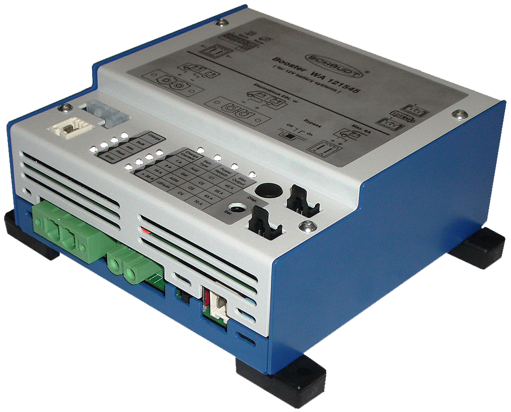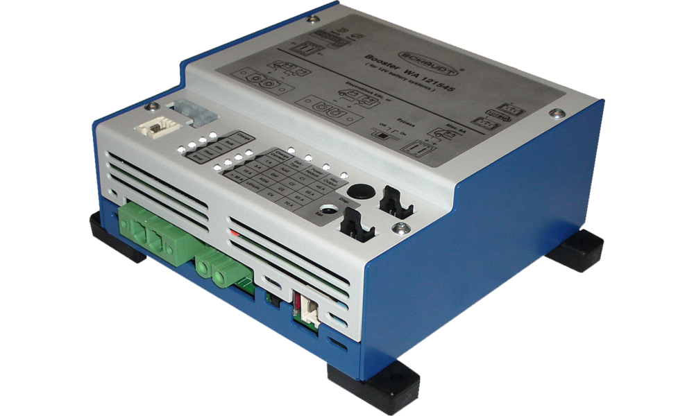 Der Booster WA 121545 ist ein getakteter Auf-/Abwärtswandler mit sehr hohem Wirkungsgrad, der die schwankende Lichtmaschinenspannung ausgleicht und einen hohen Ladestrom zur Verfügung stellt.