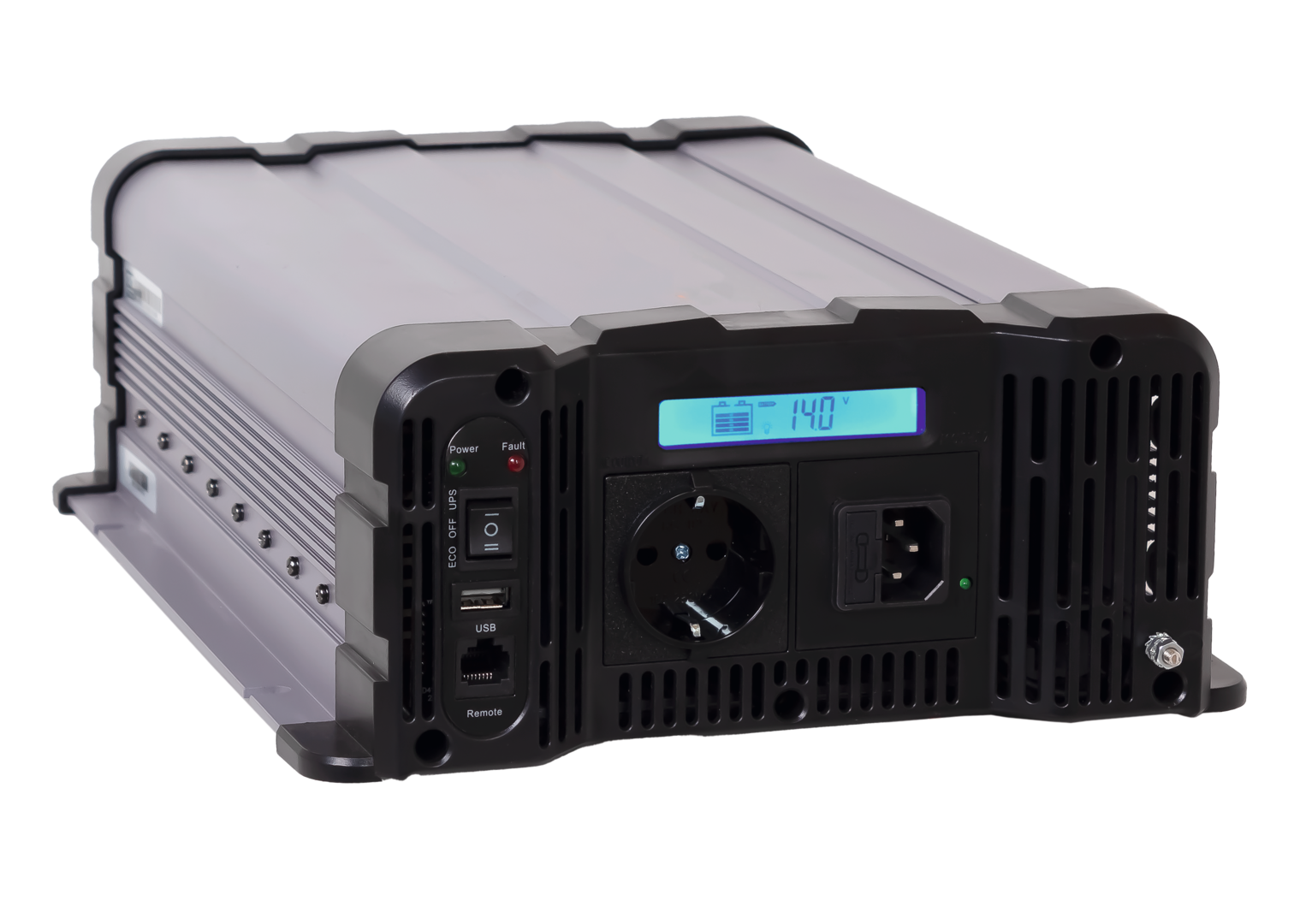 Beide Modelle verfügen über ein hellblaues LCD-Display, das Batteriestatus, Batteriespannung und Leistung anzeigt. Das Gerät ist mit mehreren Schutzfunktionen sowohl am Eingang als auch am Ausgang ausgestattet. Der Benutzer wird durch ein akustisches Signal gewarnt, wenn der Wechselrichter eine mögliche Störung feststellt. Zum Beispiel, wenn die Batteriespannung zu niedrig wird oder die Temperatur im Wechselrichter einen bestimmten Wert überschreitet.