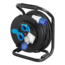 Camping-Kabeltrommel aus robustem, bruchfestem Spezialkunststoff, stabiles Rohrgestell, ergonomisch geformter Haltegriff.