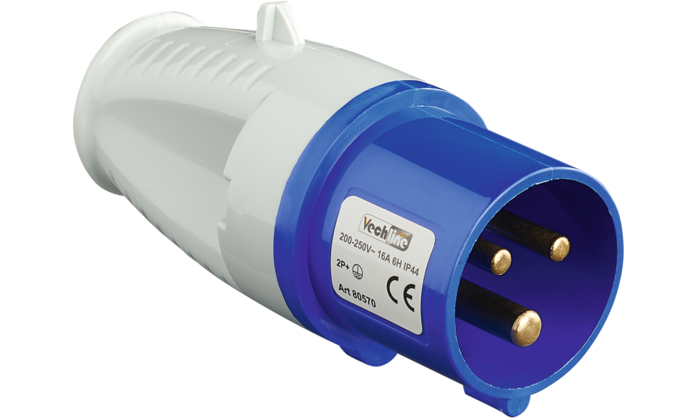 3-polig, 230 V/16 A, spritzwassergeschützt.