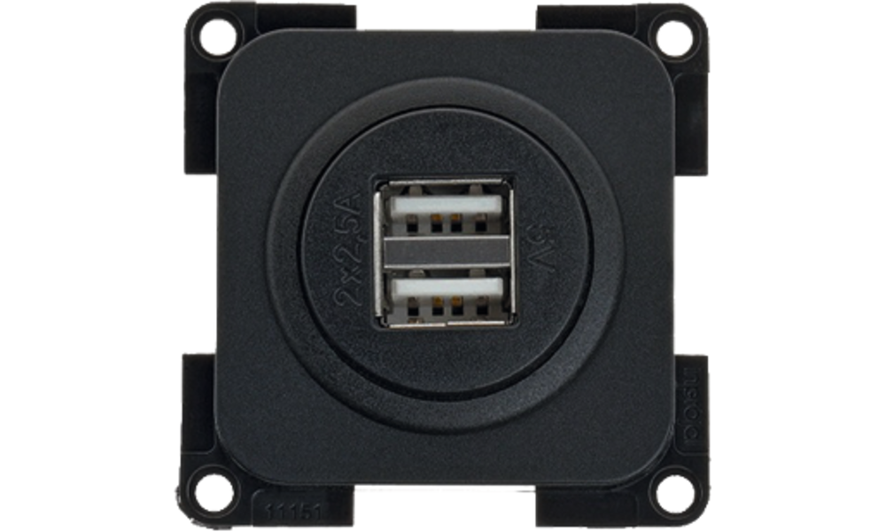 Eingangsspannung 12-24 V, USB-Ausgang 5 V/2 x 2,5 A. Inklusive Hilfsrahmen.