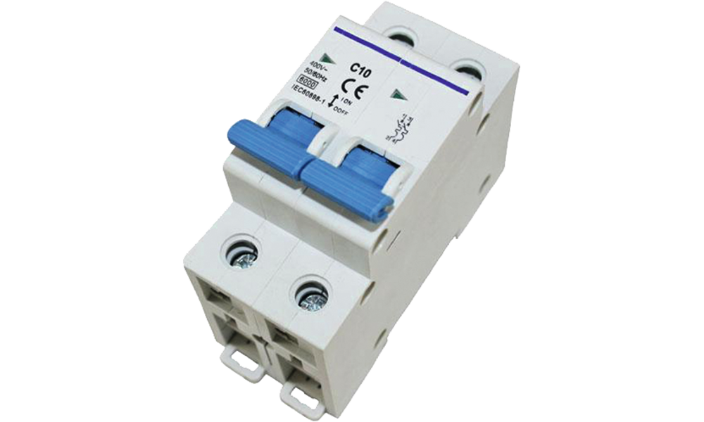 Leitungsschutz 10 A, Bemessungsstrom 10 A, Bemessungsspannung 400 V, Auslösecharakteristik C, zweipolig, Schutzart IP20.