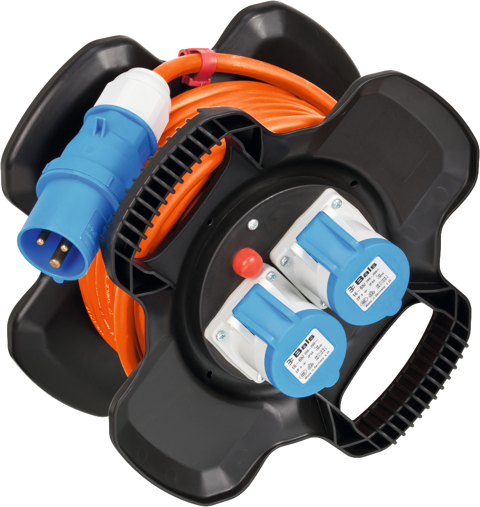 Beständig gegen diverse Öle, Fette, Benzin, Säuren, UV- und Ozonstrahlung. Mit robustem 10 m RN-Kabel (H07RN-F 3G2,5) in der Signalfarbe orange, 1-poliger Sicherheitsabschaltung und Überhitzungsschutz.