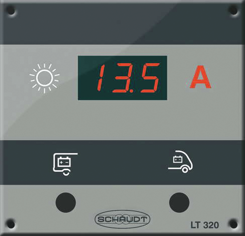 Die Kontrolltafel LT 320 Solar wird direkt an einen entsprechenden Schaudt Solarregler (LR 1218, LRM 1218) angeschlossen.