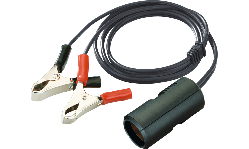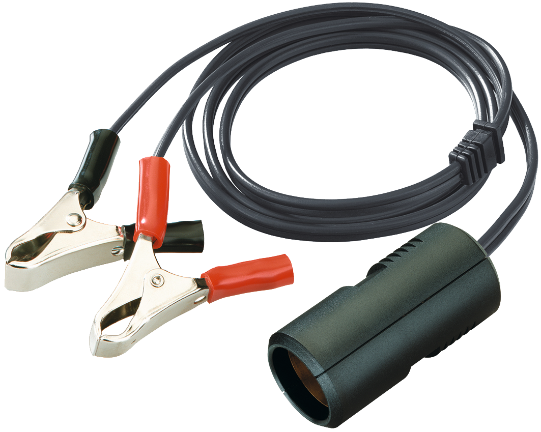 8 A, (Innen-ø 21 mm), mit 1 m Zuleitung und Krokodilklemmen zum Anschluss an eine KFZ-Batterie.