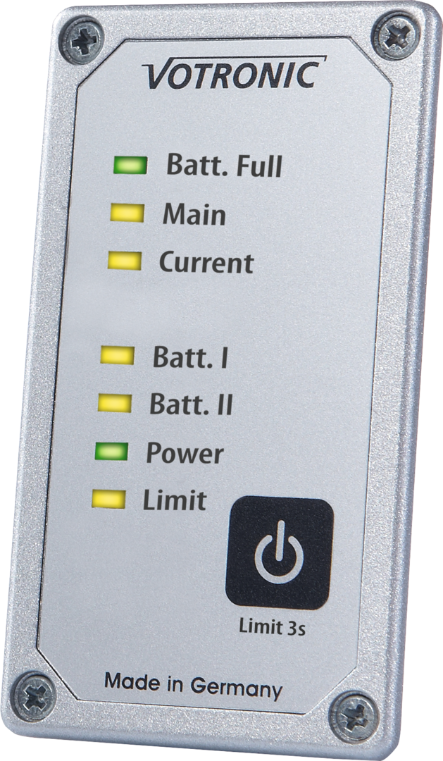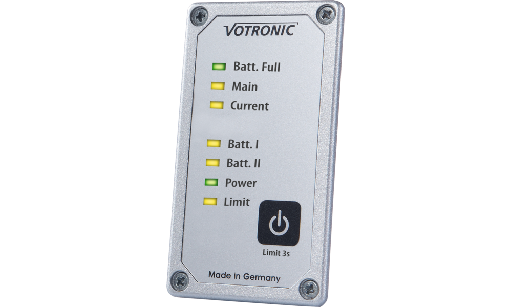 Über die Kontroll-LED's werden Gerätestatus sowie Ladefortschritt angezeigt und der Geräteschalter dient spezifischen Funktionen der Geräte. Als Panel-Version mit planer Oberfläche ausgeführt, reiht sich die Fernbedienung sowohl optisch als auch mechanisch (gleiche Bauhöhe 85 mm) nahtlos an die weiteren Anzeigen des VOTRONIC Modulsystems an.