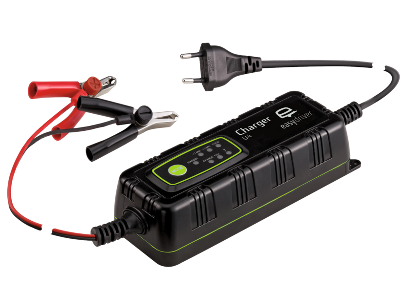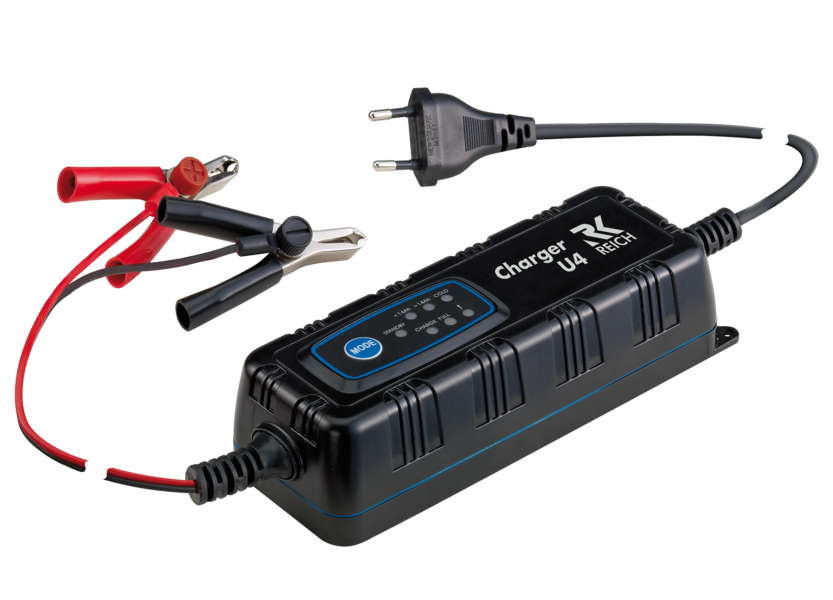 Drei wählbare Lademodi stellen eine schonende Ladung für unterschiedliche Batterien und niedrige Temperaturen sicher. Ladung nach IUoU-Kennlinie. Verpolungs- und kurzschlusssicher.