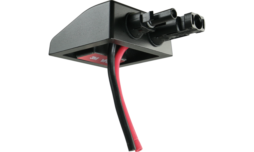 Steckfertig vorbereitet für Solarmodule mit MC4-Verbinder. Verbindungskabel für Innenraum (0,5 m) anbei.