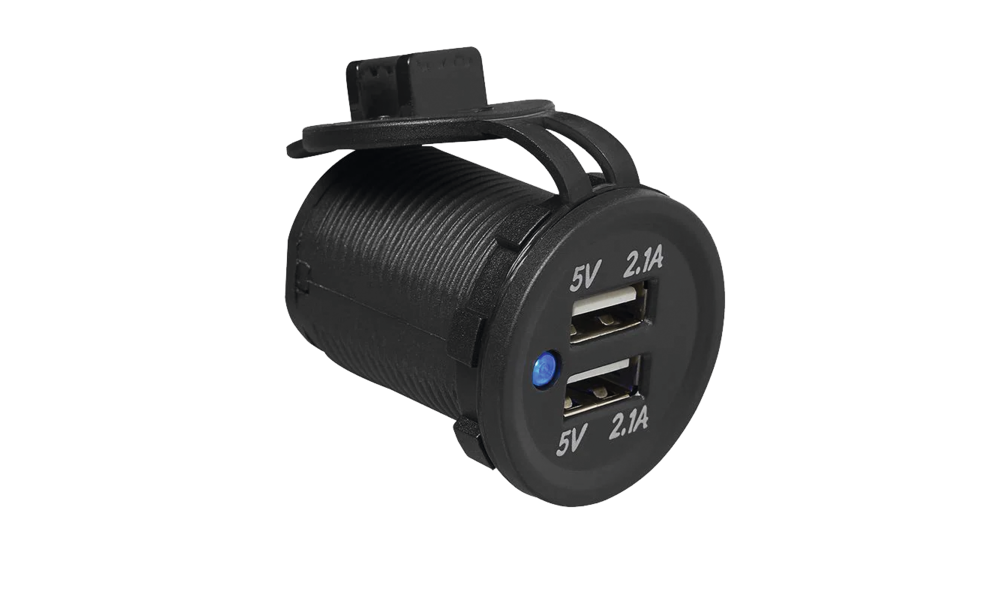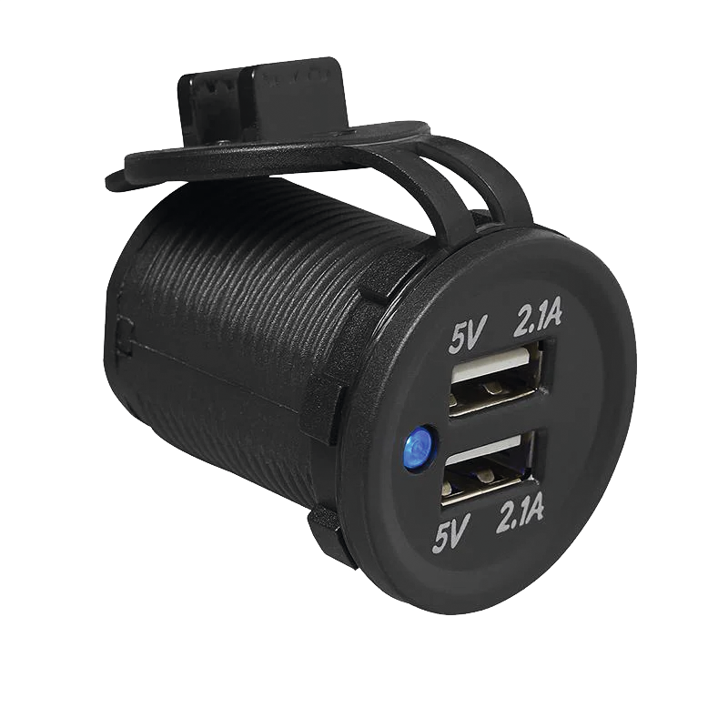 12-24 V/USB-Ausgang 5 V, 4.200 mA (2 x 2.100 mA).
