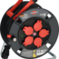 Outdoor-Kabeltrommel für den Baustelleneinsatz und den ständigen Einsatz im Freien. Ausstattung: 5 spritzwassergeschützte Schutzkontakt-Steckdosen 230 V mit selbstschließenden Deckeln, Überhitzungsschutz,