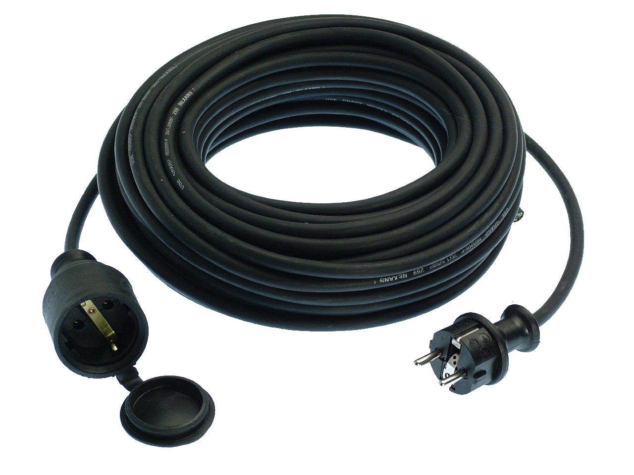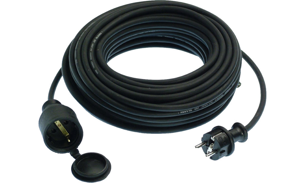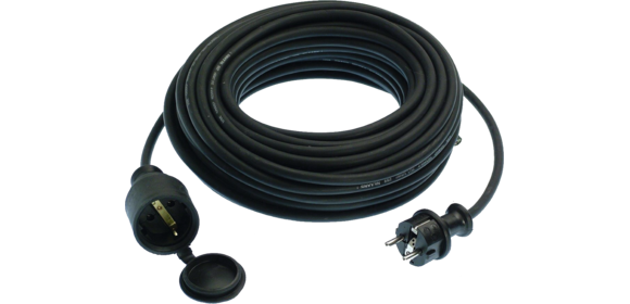 Gummi-Verlängerungskabel (H05RR-F 3G1,5) für den kurzfristigen Einsatz im Freien.