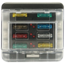 Ausgänge belastbar bis 30 A, Gesamtbelastung 100 A. Lieferung ohne Sicherungen (Typ: FS). Betriebsspannung 12/24 V.