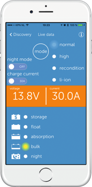 Adaptiver 6-stufiger Lade-Algorithmus: Das Blue Smart-Ladegerät zeichnet sich durch sein mikroprozessorgesteuertes, „adaptives” Batterie-Management aus. “Adaptiv“ bedeutet, dass der Ladevorgang automatisch der Art der Batterienutzung angepasst wird.