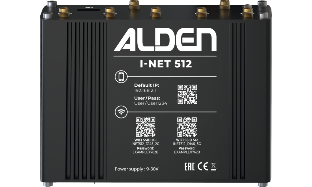 LTE-Antenne, ALDEN I-Net 512 Router, SIM Adapter Kit, Ethernet-Kabel 1,5 m, Antennen-Befestigungs-Set, 12 V Anschlusskabel, 2 x WiFi SMA Antenne, 2 x Mobile SMA Antenne